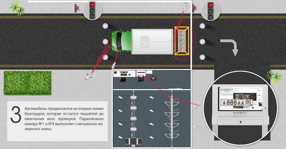 1. При первом проезде автомобиля фиксируется лицо водителя и номера транспортного средства.