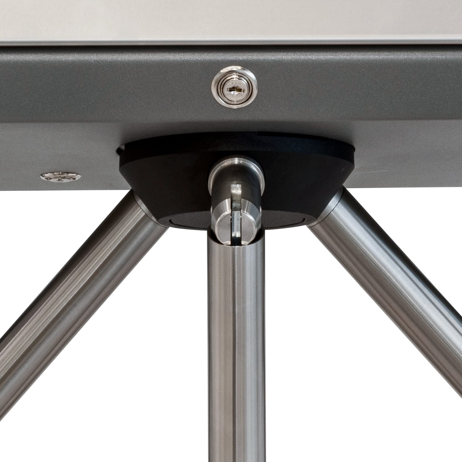 Функция механической разблокировки обеспечивает свободное вращение преграждающих планок в обоих направлениях. Замок механической разблокировки встроен в стойку турникета и снабжён комплектом ключей.