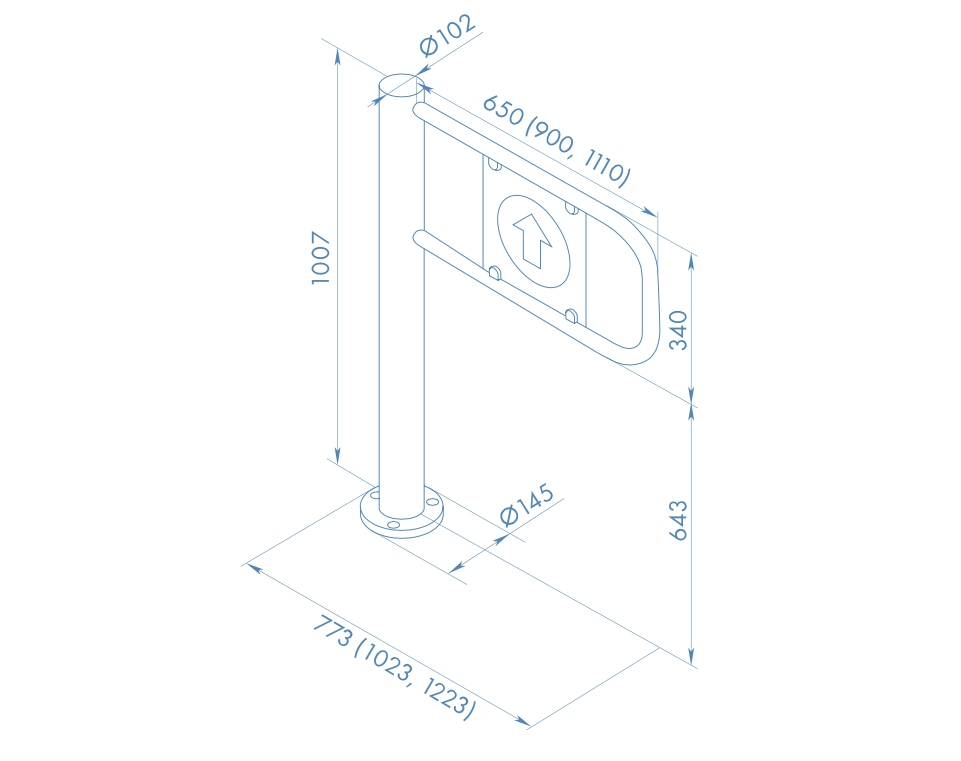 Калитка автоматически распахивается в направлении разрешенного прохода по сигналу от оптических датчиков, системы контроля доступа или пульта управления. После прохода человека створка калитки автоматически возвращается в исходное положение. Для провоза габаритных грузов и проезда инвалидных колясок предусмотрена фиксация створки в открытом положении.