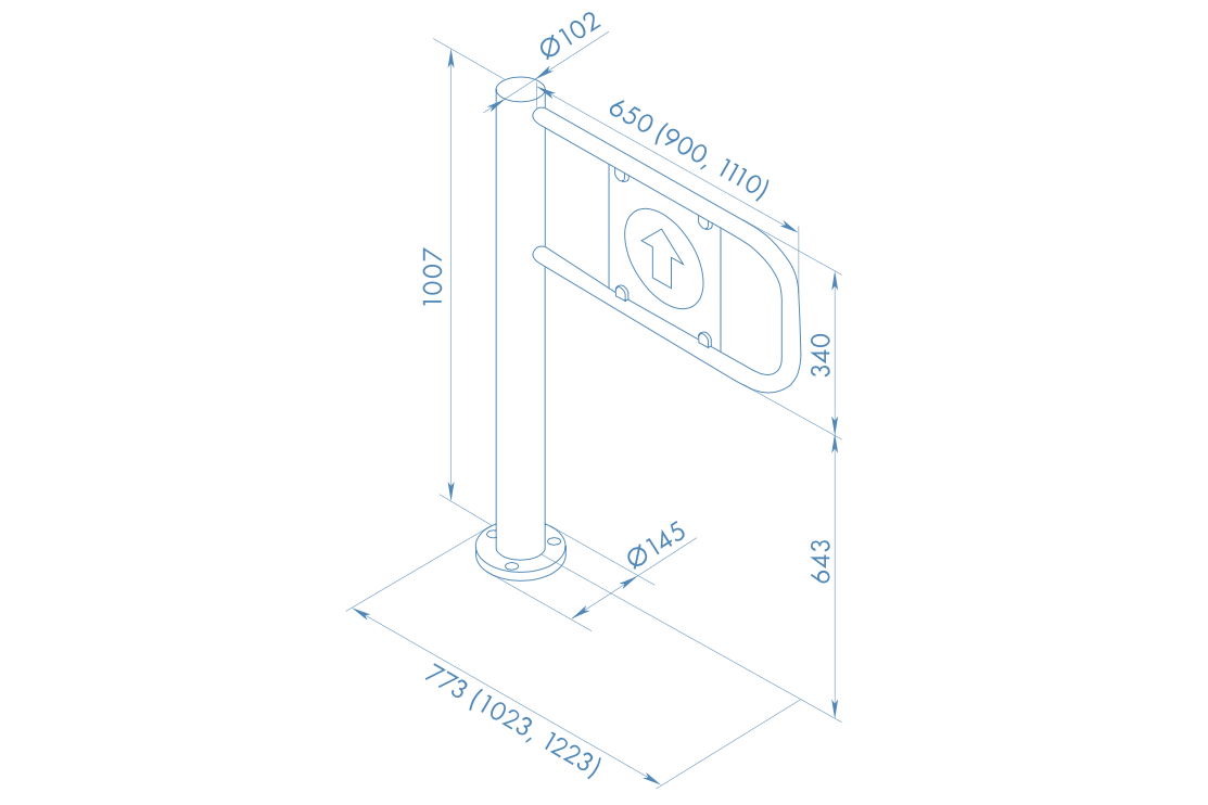 Калитка автоматически распахивается в направлении разрешенного прохода по сигналу от оптических датчиков, системы контроля доступа или пульта управления. После прохода человека створка калитки автоматически возвращается в исходное положение. Для провоза габаритных грузов и проезда инвалидных колясок предусмотрена фиксация створки в открытом положении.