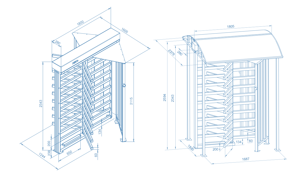 Дополнительная защита турникета от атмосферных осадков и попыток проникновения через его верх, достигается опциональной установкой крыши, соединяемой с турникетом в единую конструкцию.
