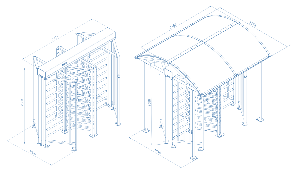 Дополнительная защита турникета от атмосферных осадков и попыток проникновения через его верх достигается опциональной установкой крыши, соединяемой с турникетом в единую конструкцию.