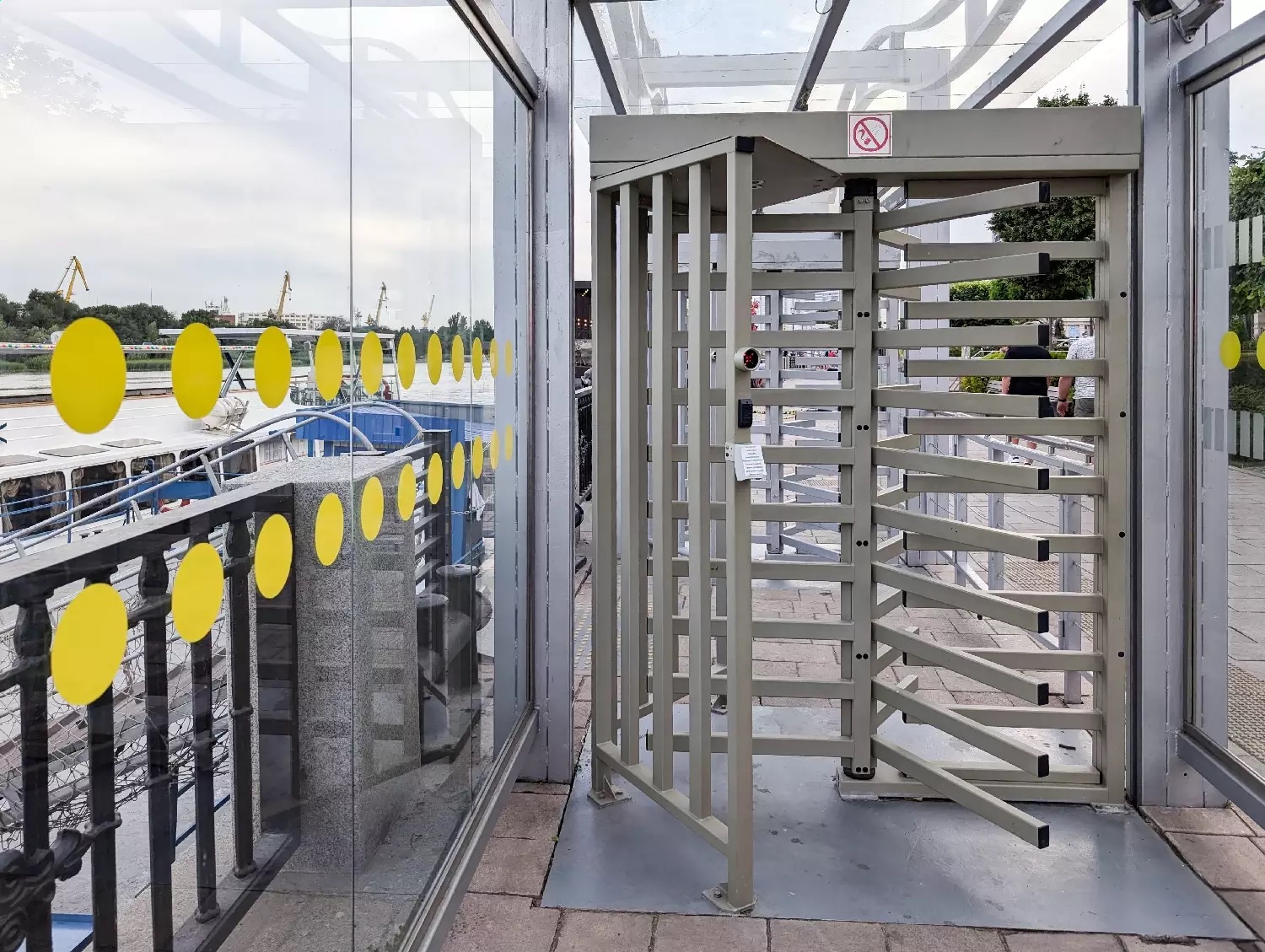 Дополнительная защита турникета от атмосферных осадков и попыток проникновения через его верх достигается опциональной установкой крыши, соединяемой с турникетом в единую конструкцию.