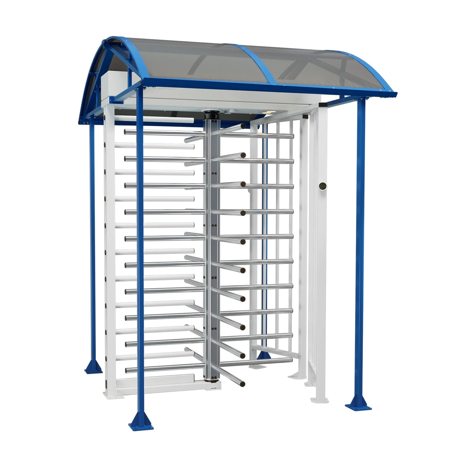 Дополнительная защита турникета от атмосферных осадков и попыток проникновения через его верх достигается опциональной установкой крыши, соединяемой с турникетом в единую конструкцию.