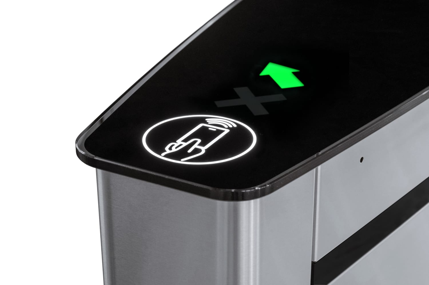 Индикация направления прохода расположена на торцах корпусов стоек турникета. Индикация состояния турникета (открыто/закрыто) размещена на крышках стоек.