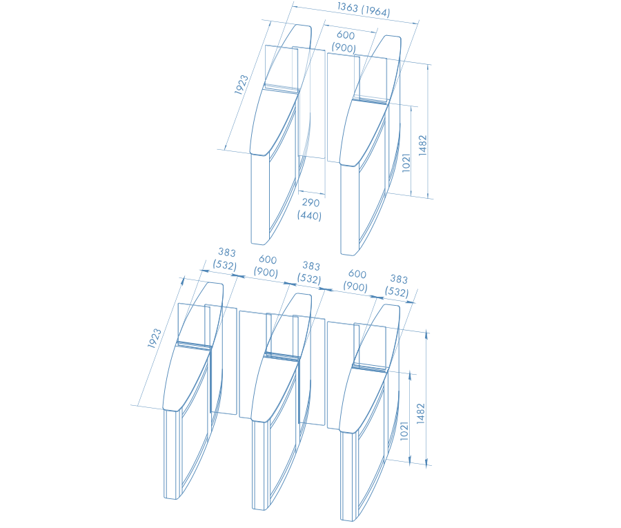 Скоростной проход ST-02 выпускается в двух модификациях – со стандартной шириной зоны прохода 600 мм и увеличенной 900 мм.