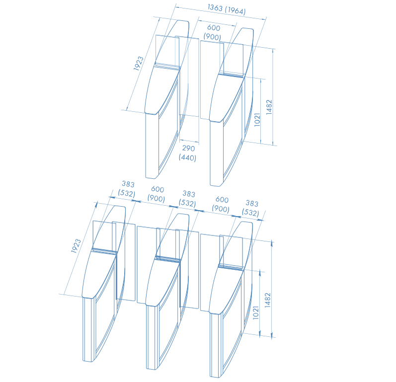 Скоростной проход ST-02 выпускается в двух модификациях – со стандартной шириной зоны прохода 600 мм и увеличенной 900 мм.