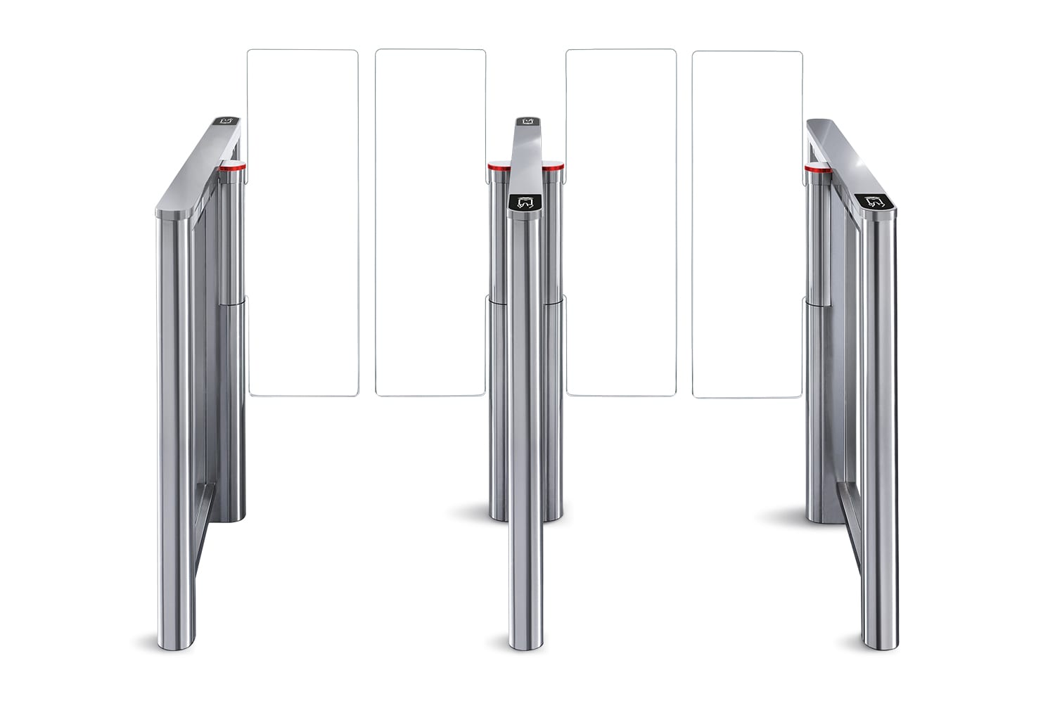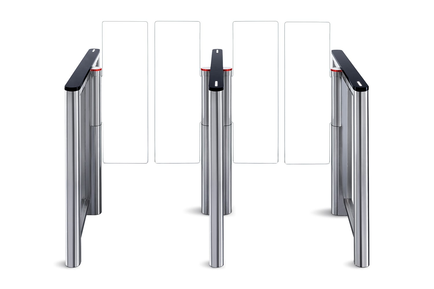 Система слежения снабжена двумя уровнями инфракрасных датчиков, 24 пары расположены на верхнем уровне и 24 – на нижнем, что гарантирует безопасность прохода при высокой пропускной способности и позволяет предотвратить одновременный проход нескольких человек.