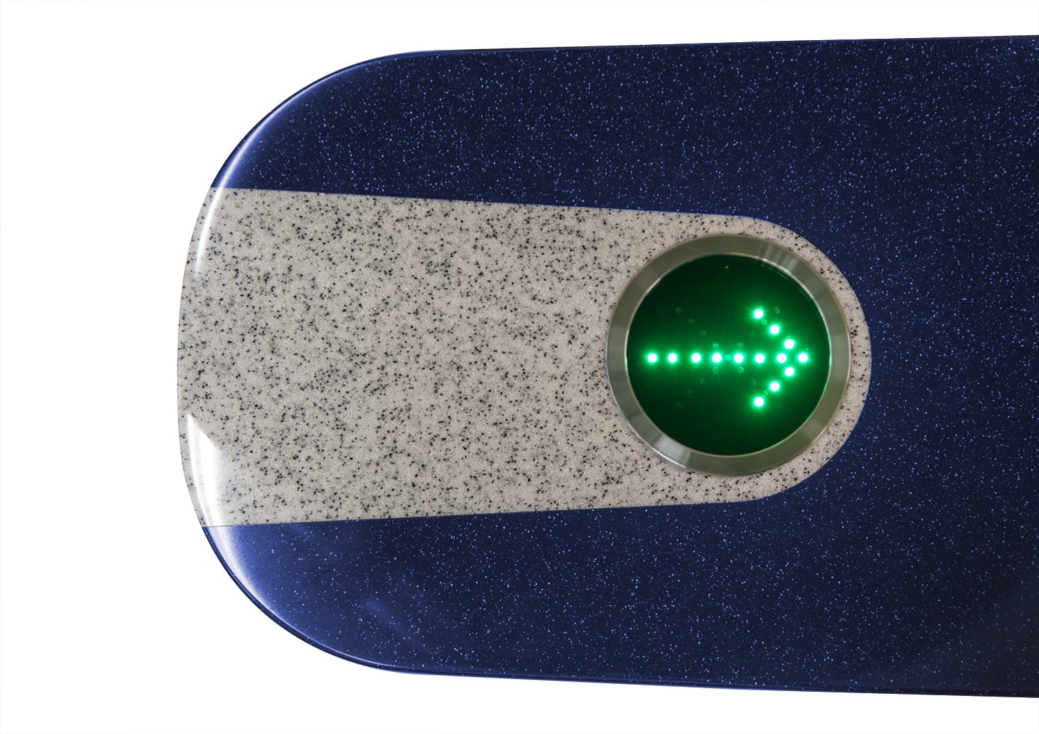 В крышку турникета встроены светодиодные блоки индикации с яркими пиктограммами, служащие для указания направления прохода и индикации состояния турникета: зелёная стрелка показывает направление разрешенного прохода, турникет открыт в заданном направлении; красный крест показывает, что проход запрещён, турникет закрыт. Дополнительно предусмотрены выходы для подключения выносных индикаторов направления прохода.