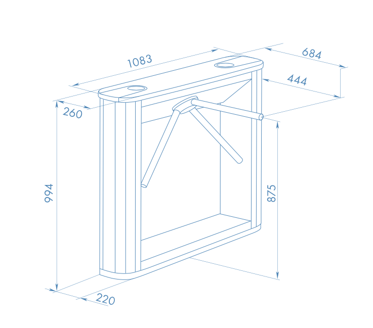 Турникет является нормально закрытым устройством – он остается закрытым до тех пор, пока не будет получен сигнал, разрешающий проход, или турникет не будет открыт ключом механической разблокировки. В турникете предусмотрена возможность автоматической разблокировки при поступлении сигнала от системы пожарной сигнализации.