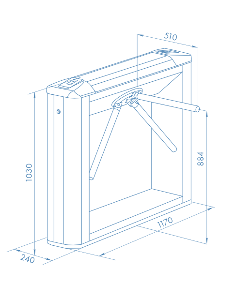 Турникет является нормально закрытым устройством – он остается закрытым до тех пор, пока не будет получен сигнал, разрешающий проход, или турникет не будет открыт ключом механической разблокировки. В турникете предусмотрена возможность автоматической разблокировки при поступлении сигнала от системы пожарной сигнализации.
