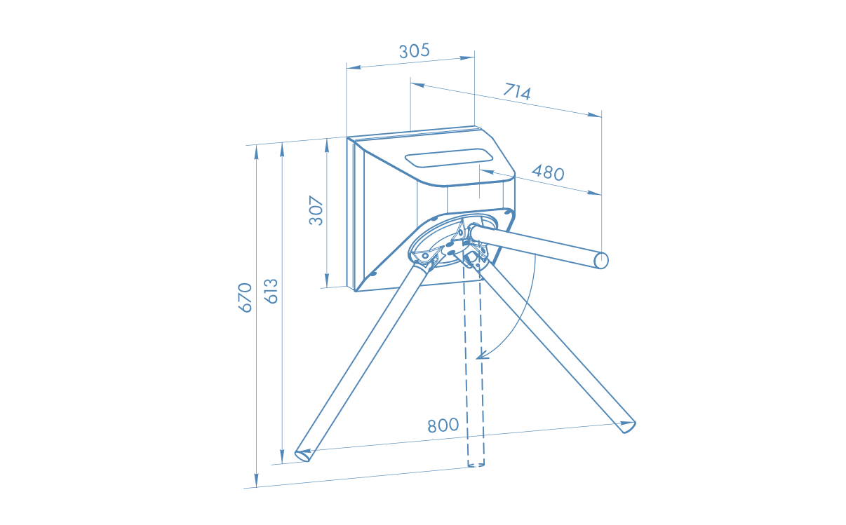 Моторизованный турникет-трипод TTR-10AK предназначен для настенного крепления и применяется в качестве компактного преграждающего устройства для управления потоками людей на проходных промышленных предприятий, в банках, административных учреждениях, магазинах, вокзалах, аэропортах.