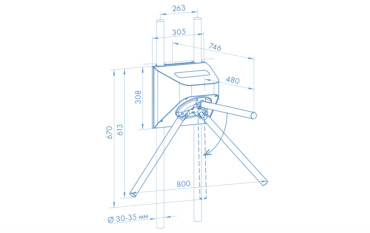 Управление турникетом возможно как от системы контроля доступа, так и автономно с помощью пульта дистанционного управления или устройства радиоуправления (приобретается отдельно).