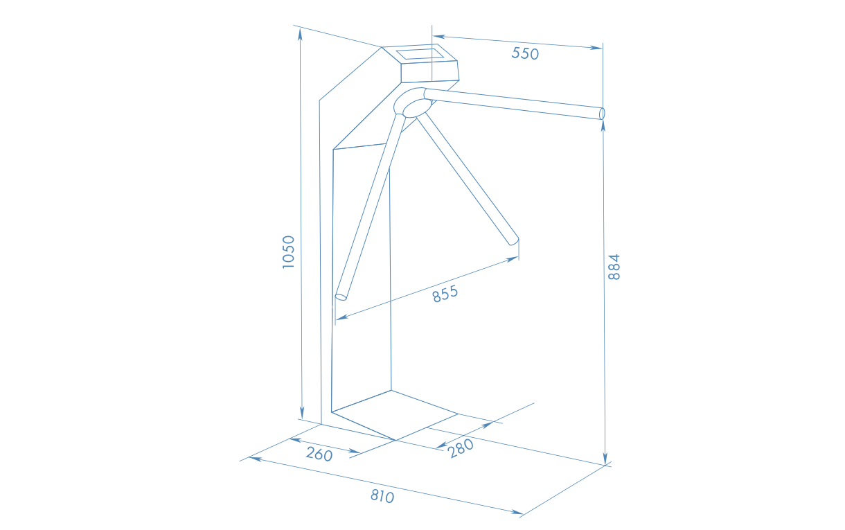 Плата блока управления конструктивно размещена в корпусе турникета. Механизм доворота обеспечивает автоматический доворот преграждающих планок до исходного положения после каждого прохода. Встроенный гидравлический демпфер обеспечивает плавную и бесшумную работу турникета.